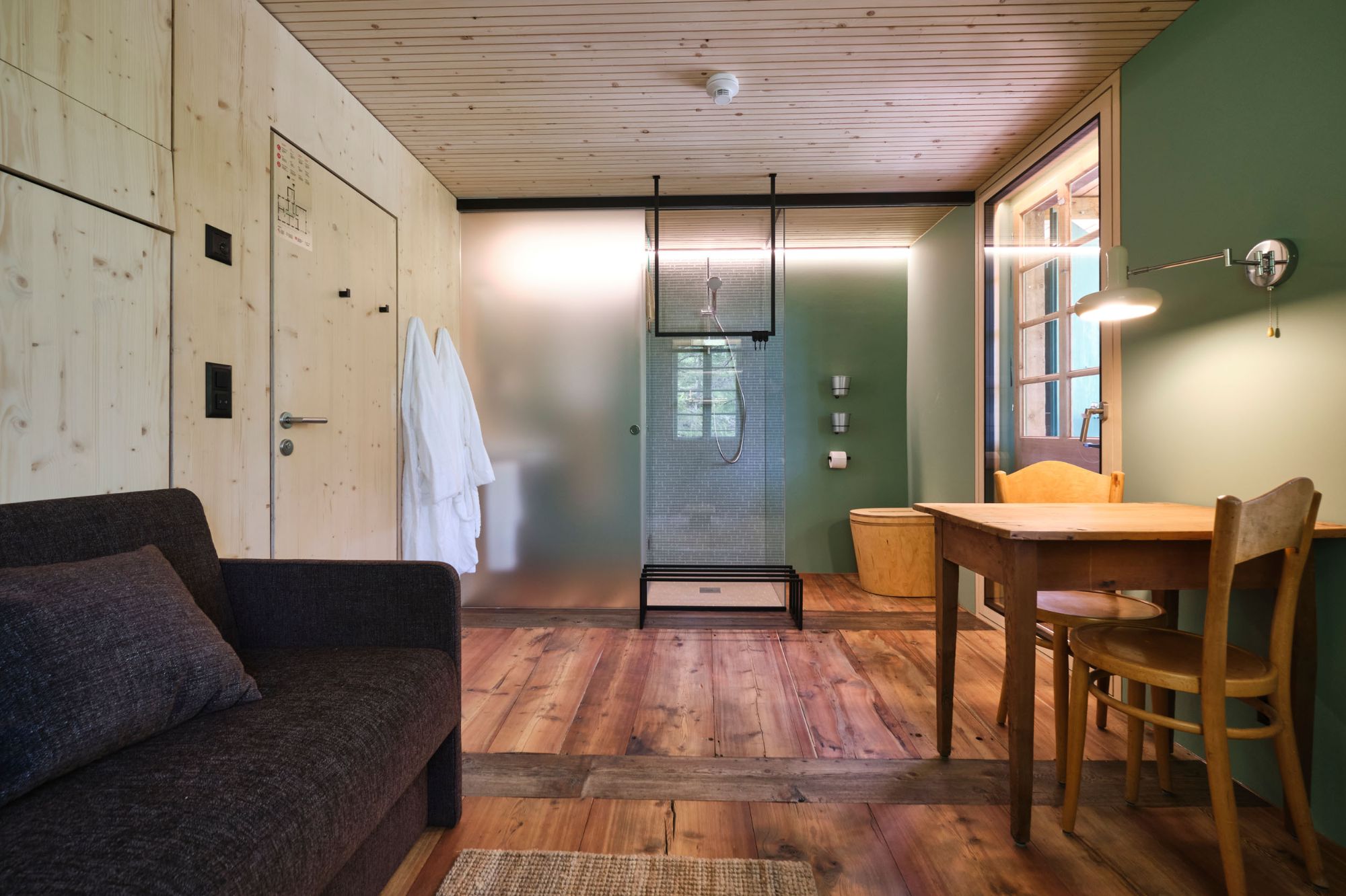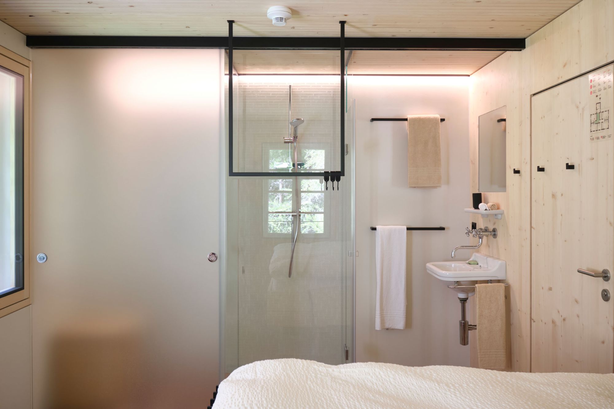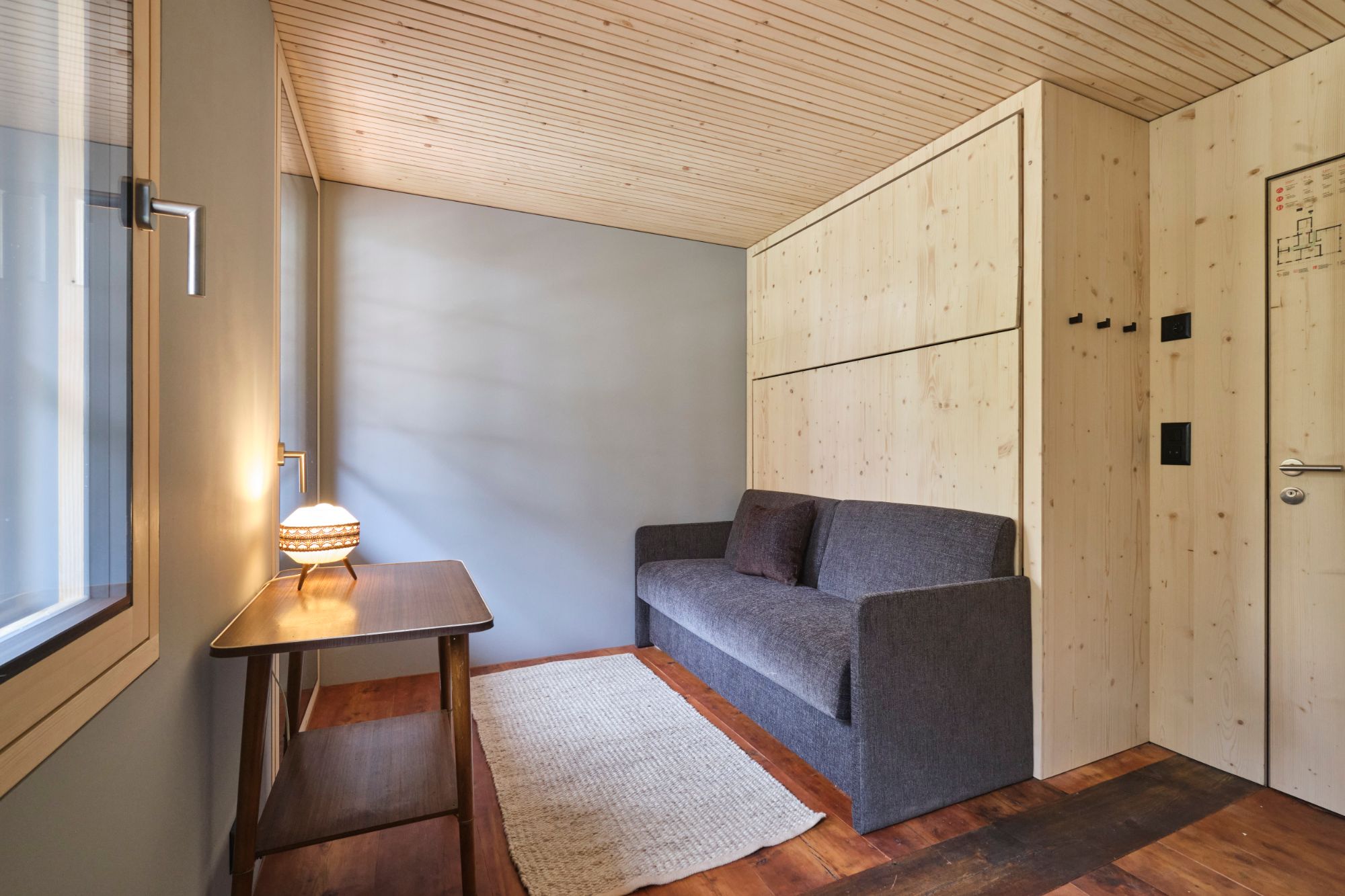 Offrez-vous une escapade unique à la cabanotel où confort et nature se rencontrent. Installez-vous dans l’espace jour, avec son canapé double et son coin cosy, idéal pour savourer un thé ou un café. Le soir, l’espace se transforme en une chambre douillette avec un lit confortable pour une nuit paisible. Parfait pour un moment de détente et de sérénité, loin du quotidien.